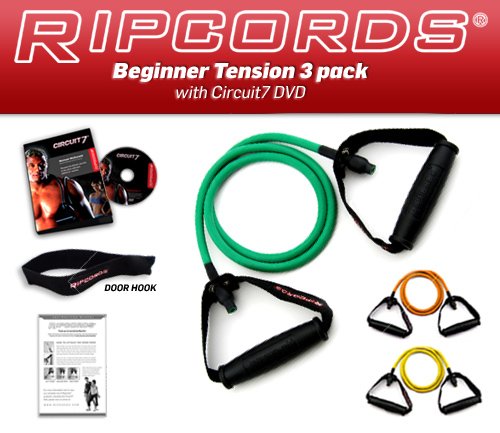 Ripcords Exercise Bands - Beginner Tension 3 Pack with Circuit7 DVD Feature