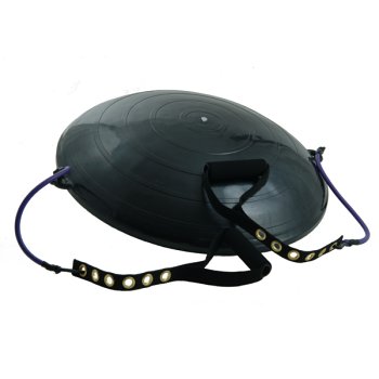 This is the most intelligently designed half-ball workout system out there. Our Core Training System offers five complete workout routines: 1) Pilates-based core strengthening, 2) resistance training for lean muscle, 3) stretching and breathing to promote flexibility, 4) sculpting and toning exercises, and 5) a balance/cardio workout. The reversible, inflatable dome increases your fitness results by engaging key stabilizer muscles that other workouts ignore. Our exclusive DVD shows you the five, 10-minute workouts featuring fitness instructor Suzanne Deason. Do one or do them all, depending on your time constraints. With attached, adjustable foam handled cords to sculpt abs, glutes and extremities.