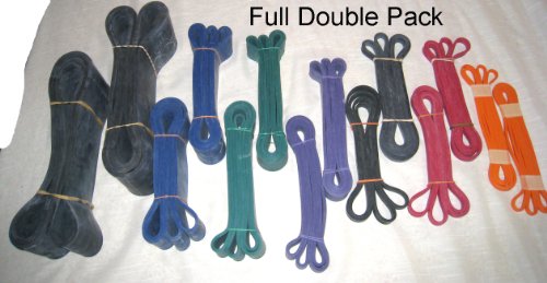 Full pack of 14 bands, two of each size. Micro, Mini, Monster Mini, LIght, Average, Strong and Monster. - 20 years experience in rubber band strength training- No Bonding, moulding or seams are used. - Jump Stretch Bands are built in layers on mandrels with no seams for potential breakage. They are backed by full 1 year warranty - 41" long. -Color and label may vary depending on what Jumpstretch provides --------------------------------------------------------------------------------